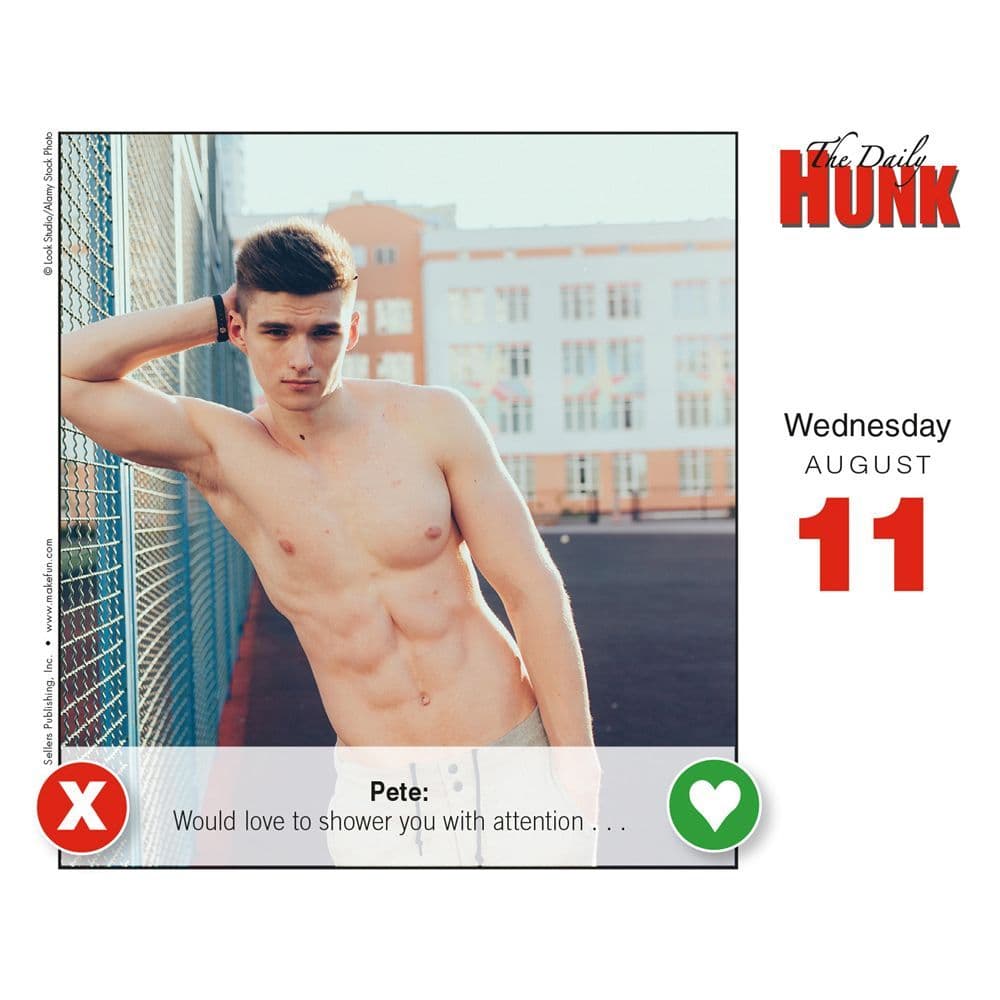 Daily Hunk Calendar 2024. Accompanying each photograph is a tongue in cheek bio that reads like something right out of the personals. The Daily Hunk contains enough sexy men to keep you fantasizing all year long. Each month features a different luscious lad showing off his finely sculpted physique — and his favorite tartan, of course. This daily calendar is sure to get some hearts racing! The Daily Hunk daily calendar contains enough sexy men to keep you fantasising all year long. Accompanying each photograph is a tongue-in-cheek bio that reads like something.